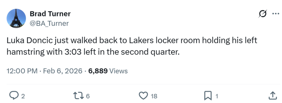 湖人官方也在半场结束时确认消息真实性,指出东契奇因腿筋酸痛本场将不会回归,确定缺席下半场的争夺。