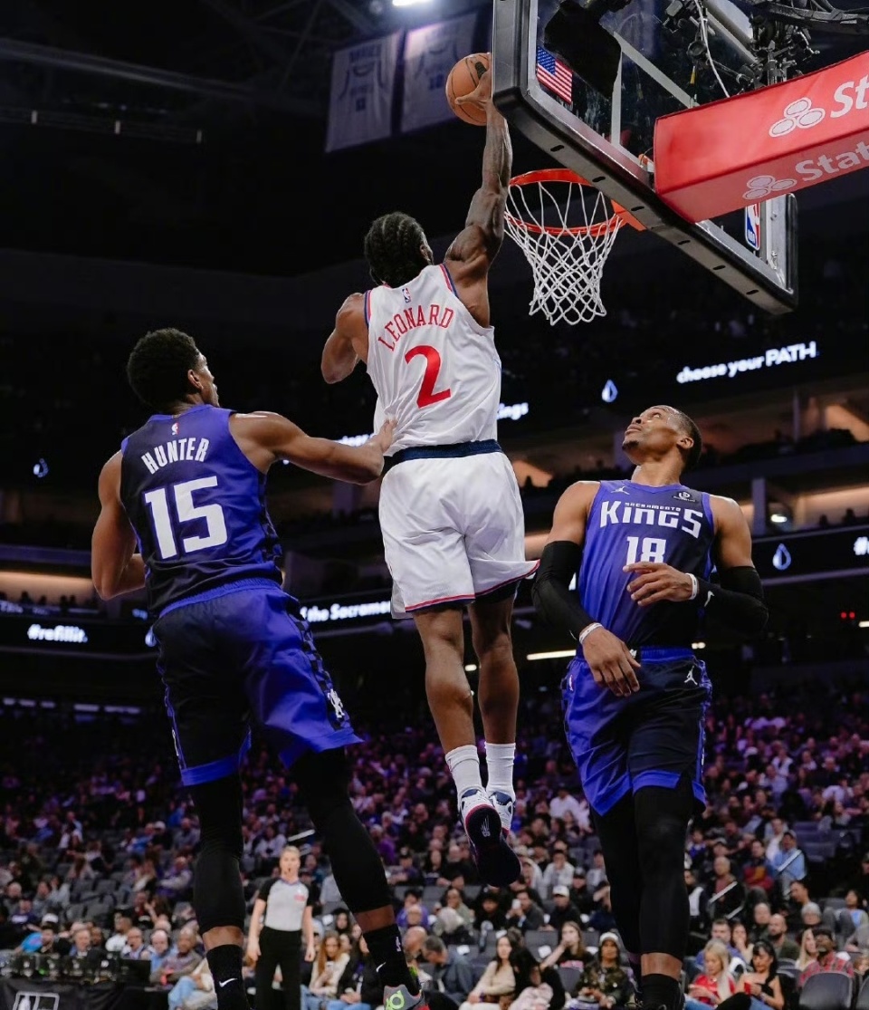 伦纳德本赛季是很想拼一把的,他的出勤率已经很高了,不过随着哈登+祖巴茨的离开,快船队的竞争力下滑了很多,现在就看加兰和马瑟琳回归后,会打出怎样的效果了,现在对快船来说比较好的消息是,伦纳德的状态正佳,他今天继续强势发挥,在祖巴茨走后,洛佩斯进入了首发,面对国王,快船打得还是不错的!