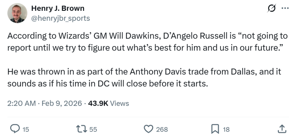 完成交易之后,不仅浓眉哥对于加盟鱼腩奇才队不感兴趣,双方合作计划一波三折,作为添头的拉塞尔也被曝出不愿意前往奇才报到。