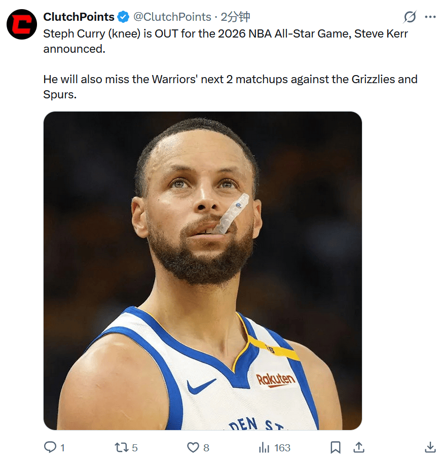 库里的缺席也代表肖华预计将再选一名球星顶替库里的位置。在今年全明星赛中,已经有多名球星因伤不能出战,其中包括两届MVP字母哥,上赛季MVP+总冠军得主亚历山大,如今又增加了库里的名字。