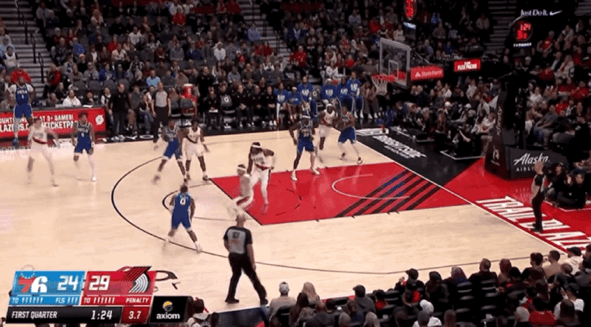 半场比赛结束,76人65-64领先开拓者。76人2人上双,乌布雷16分3篮板4抢断,马克西16分,沃特福德9分,埃奇库姆7分4篮板。开拓者3人上双,卡马拉17分2抢断,格兰特10分,阿夫迪亚10分3篮板3助攻,克林根9分。