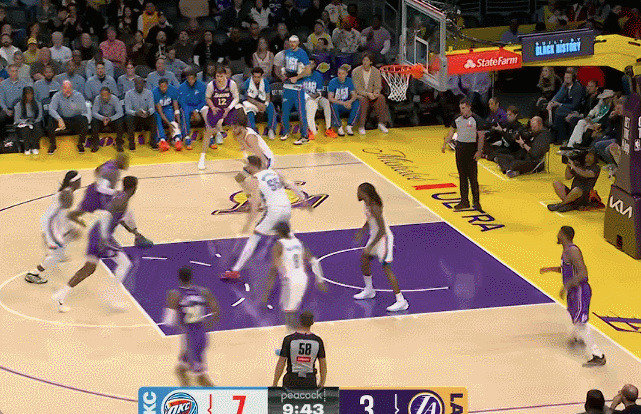 进入末节争夺,斯马特3分命中,卡鲁索连得5分,斯马特3分再中,杰伦威反击上篮打进,切特一对一也有,詹姆斯上篮止血,杰伦威2分回应,詹姆斯上篮打进,杰林、杰伦威连得5分,斯马特、八村垒回应5-0攻击波,切特补篮打进,八村上篮回应,杰伦送关键中距离,詹姆斯丢关键三分,最终湖人不敌雷霆3连胜终结。