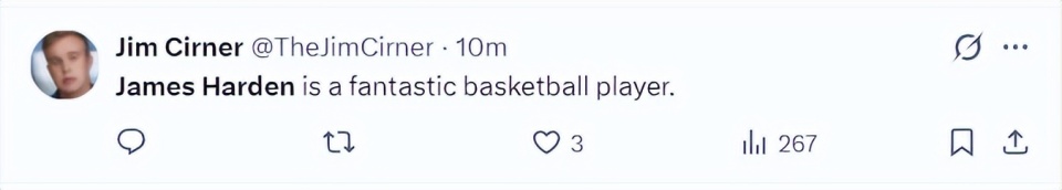美记Jim Cirner:哈登是一位非常出色的篮球运动员。