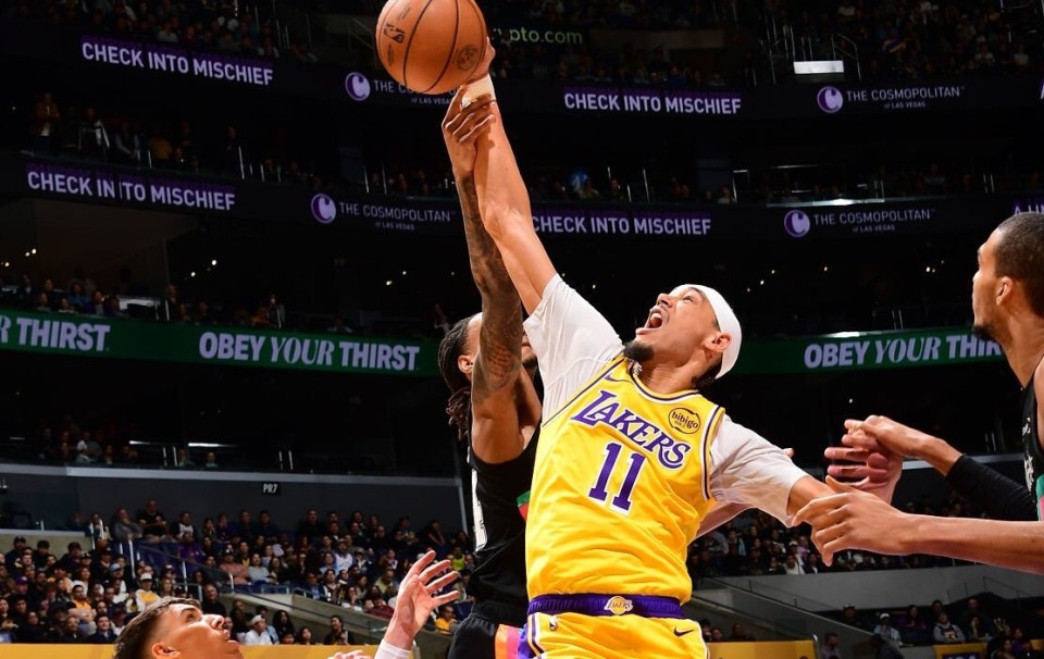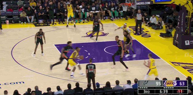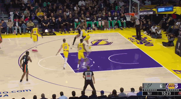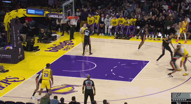 末节,克内克特抛投得分,奥利尼克上篮得分。蒂米三分命中,蒂耶罗扣篮2+1,蒂米又连得4分,把分差缩小到21分。约翰逊扣篮,麦克劳克林三分命中,奥利尼克上篮得分,麦克劳克林抢断得分,马刺回敬一波9-0。布朗尼三分命中,卡特-布莱恩特中投得分。布朗尼抛投命中,哈珀上篮得分。最终,马刺轻松击败湖人,拿下5连胜。