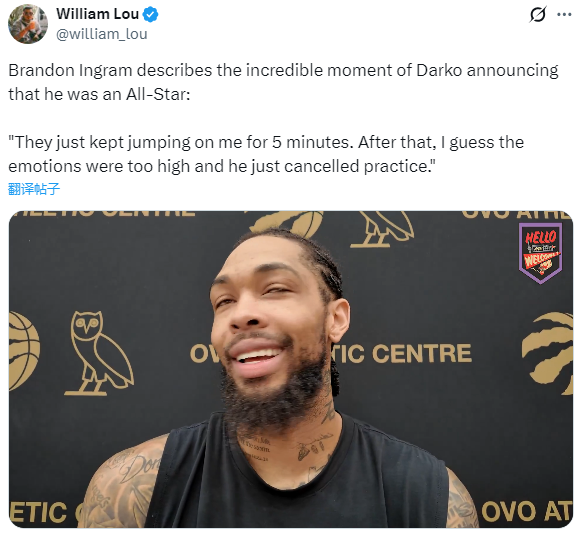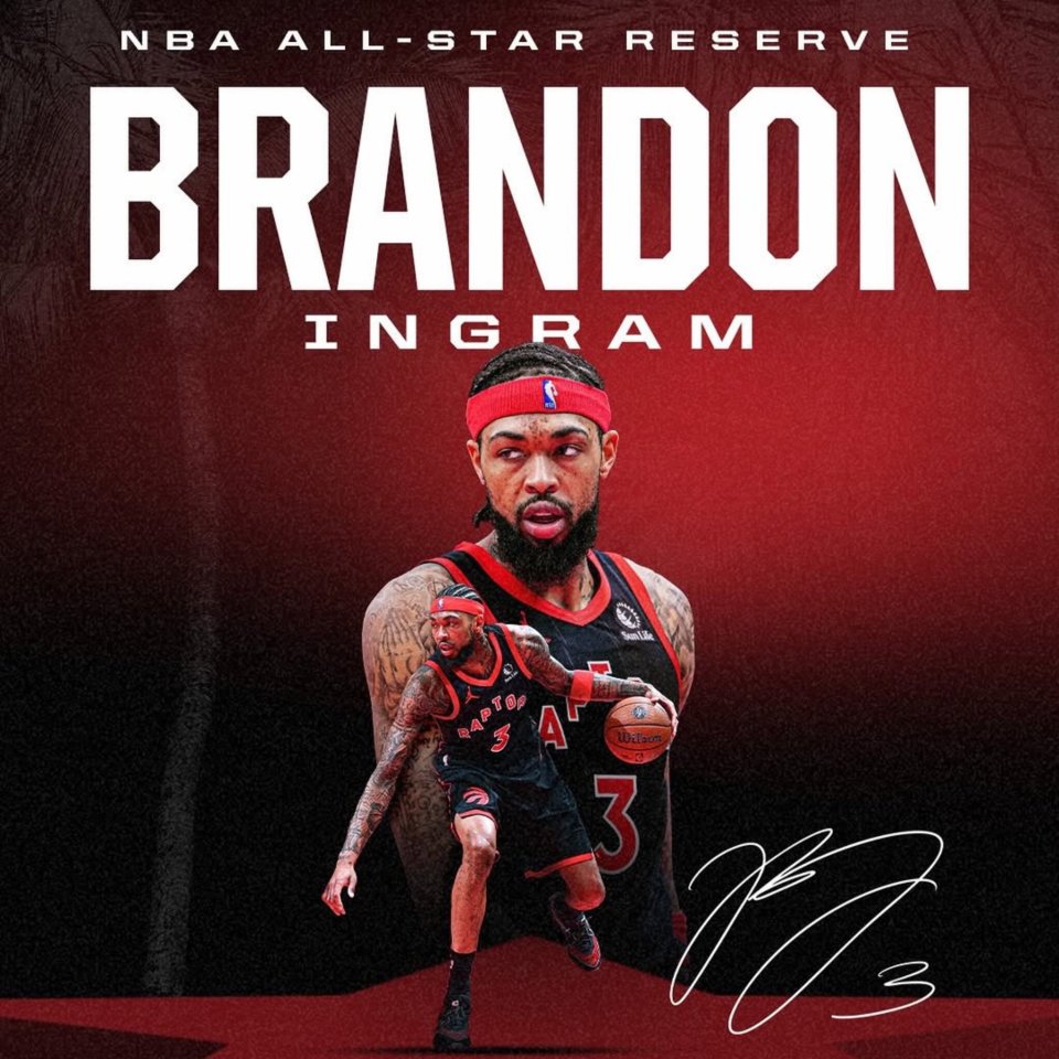 谈到入选全明星,英格拉姆表示:我喜欢来到多伦多的决定。这让我在比赛中有了更多的发展空间,特别是在防守端。拉贾科维奇一直督促我变得更好。我在这里能够展示自己的能力,并且我认为自己正在不断进步。能够入选全明星阵容是一项了不起的成就。荣耀归于上帝。