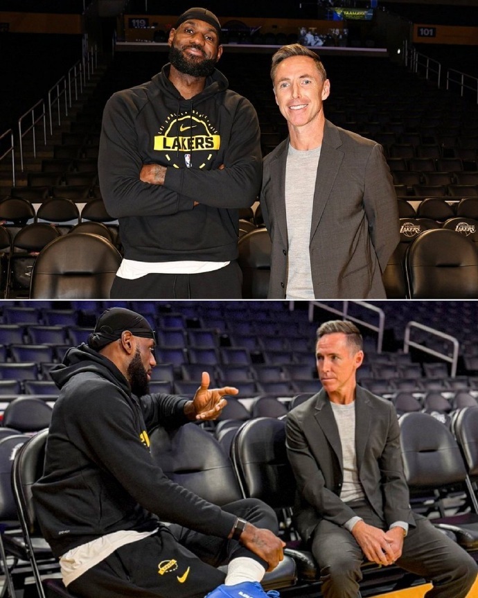 詹姆斯赛前与纳什叙旧。