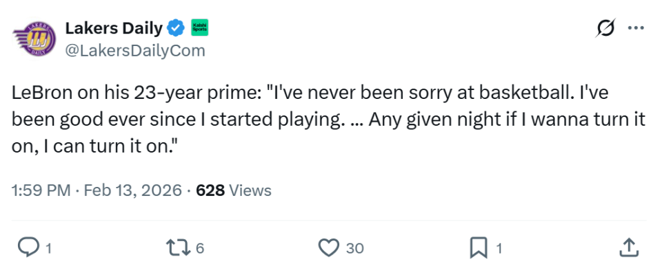 詹姆斯本人在狂刷历史之最的纪录后,赛后谈及自己漫长的巅峰期时霸气发声:“我从未因为选择篮球而后悔,自从打球以来,我一直很出色,只要我想火力全开,就能快速进入状态。”