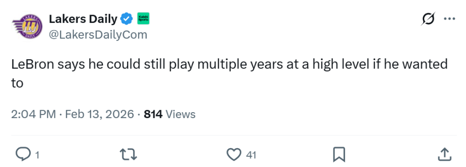 最后詹姆斯坦言只要自己愿意,仍能以高水平状态继续征战多个赛季。