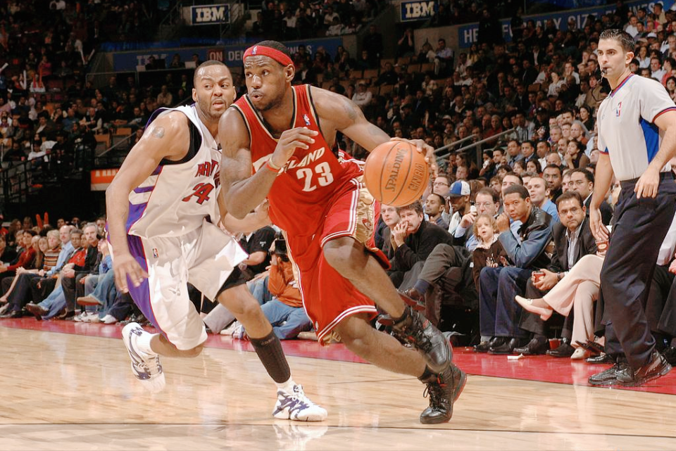聊到这个最年长三双,咱就不得不回头聊聊,他职业生涯第一次砍三双,是多少岁,又是怎样的名场面。时间直接拨回到2005年1月19号,那天骑士客场挑战开拓者,年仅20岁又20天的詹姆斯,在开拓者主场出战43分钟,16投11中砍下27分11篮板10助攻4抢断,拿到生涯首个三双。