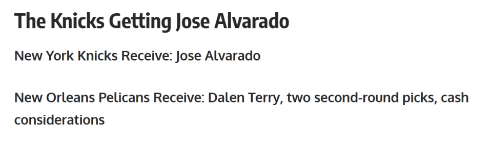 交易一:尼克斯4换1“老六”