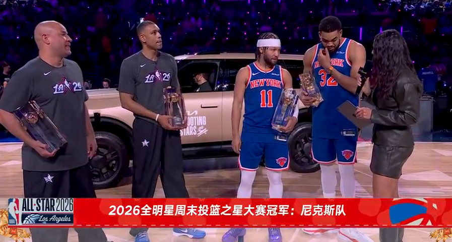 北京时间2月15日,2026年NBA全明星周末投篮之星大赛时隔11年回归,预赛阶段尼克斯队31分与卡梅隆队24分携手晋级决赛。决赛阶段,尼克斯队布伦森、唐斯、阿兰-休斯敦表现出色,最后中路四分点连续命中,最终尼克斯队47分完胜卡梅隆队38分夺冠。