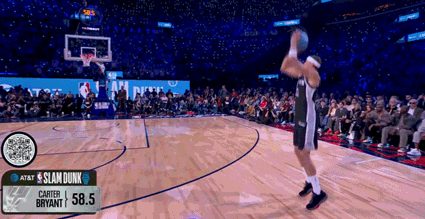 马刺14号秀卡特-布莱恩特预赛第一个出场,空中转体360暴扣+抡臂大风车,五个评委平均分只有45.6分。杰斯-理查德森第二个出场,平平无奇的小风车背扣,最终拿到45.4分。这个动作哪怕放在20年前的扣篮大赛,也拿不了高分。
