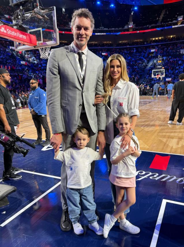 加索尔带家人一起观战全明星!妻子貌美如花 生二胎后身材不走样