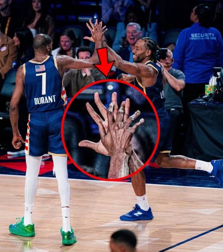 近日,美媒发布了一张在全明星正赛上杜兰特和伦纳德击掌示意的照片。照片中的伦纳德手掌大到离谱,比杜兰特都要夸张得多,看的球迷都有些不敢相信。