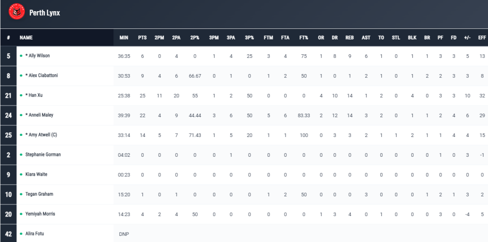 韩旭是本赛季WNBL的最佳防守球员+最佳二阵运动员,场均15.5分6.8篮板1.4助攻1抢断1.93盖帽1.63个三分,韩旭的到来让山猫硬实力大增,她加盟山猫的16场比赛赢下其中14场,胜率高达87.5%。