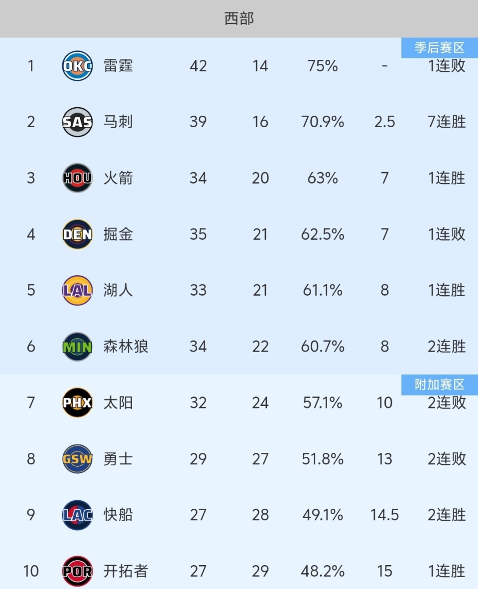 随着掘金114-115惜败,火箭升至第3,NBA最新积分榜:西部3-7名太乱了!
