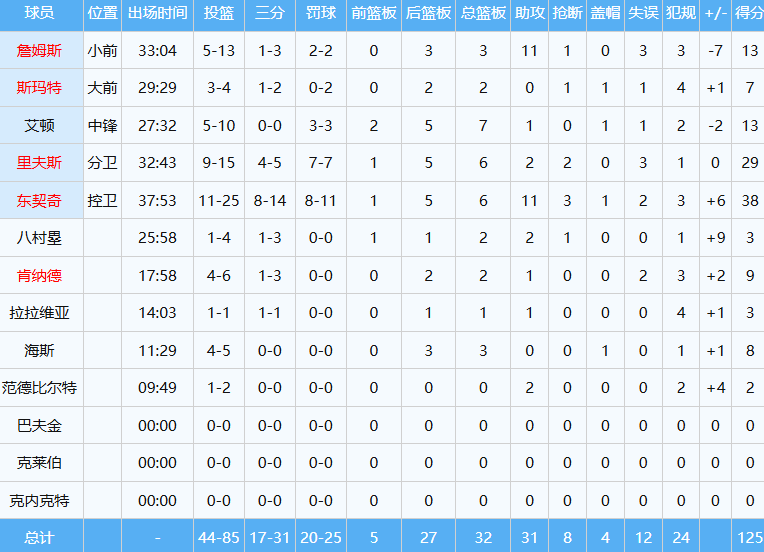 湖人数据如下: