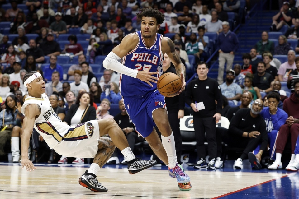 76人过去3场连输开拓者、尼克斯与老鹰遭遇3连败,鹈鹕过去两场连续主场输给热火与雄鹿遭遇2连败,本赛季首次交锋76人主场124-114战胜鹈鹕。本场76人缺少恩比德与乔治,鹈鹕缺少墨菲、穆雷、米西。首节开局76人率先取得8-0领先,鹈鹕一波7-0攻势追分,埃奇库姆三分命中。鹈鹕一波7-0攻势反超,76人多点开花一波13-3攻势反超7分,76人持续保持领先优势,马克西三分超时无效,首节结束76人29-24领先鹈鹕。首节76人三分13中5,马克西3中0得到2分4助攻;鹈鹕三分7中3,锡安5中1得到5分5助攻。