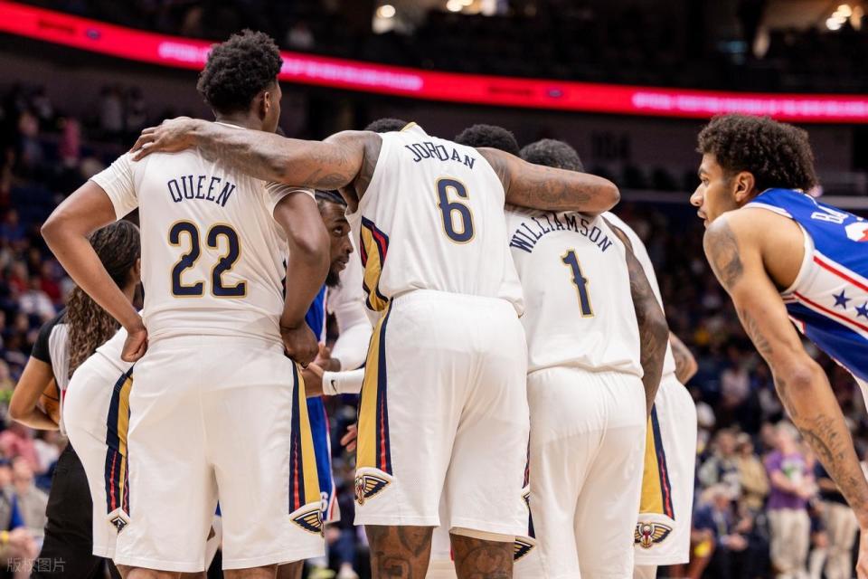 鹈鹕轻取76人,小乔丹梦回巅峰,上半场他3投2中,罚球2中1拿到5分10篮板1盖帽。