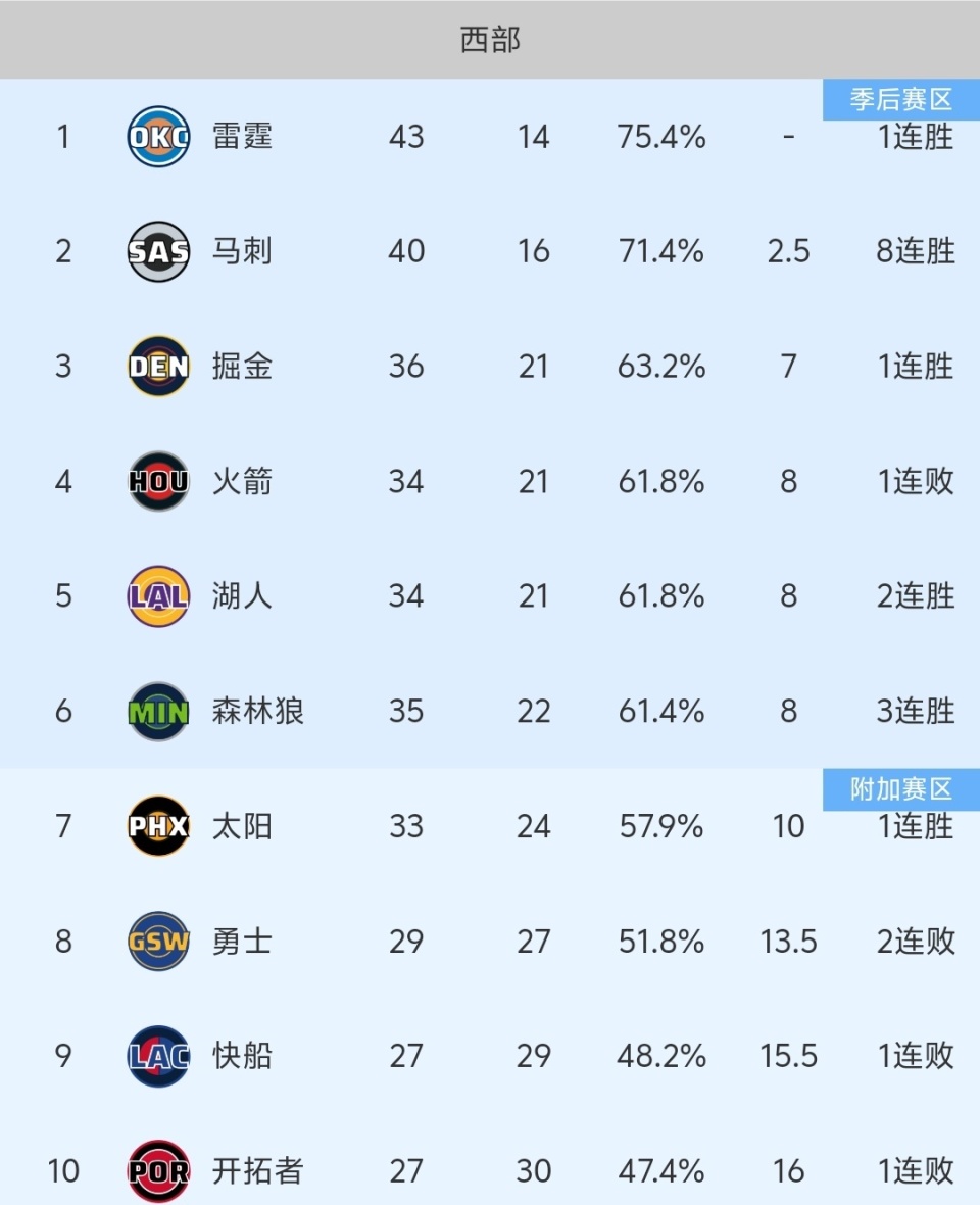 随着火箭106-108惜败,末节崩盘,NBA最新积分榜出炉:西部3-7名太乱!
