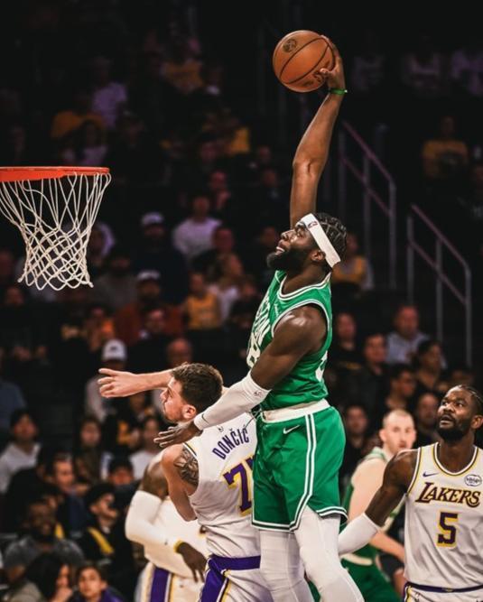 杰伦布朗32+8+7+3,詹皇造NBA神迹东契奇半场7分,绿军大胜湖人