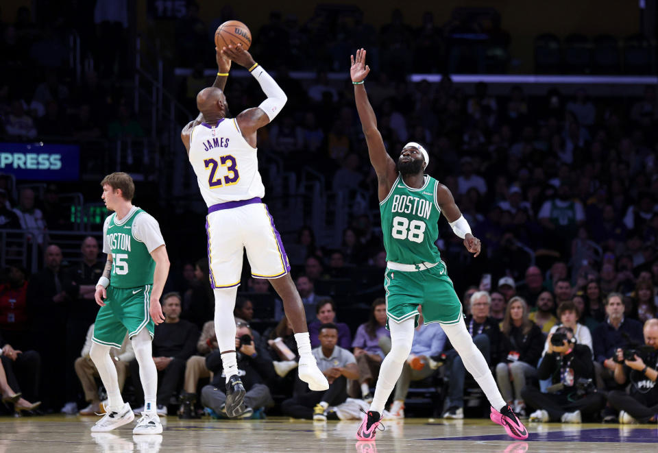 易边再战,杰伦-布朗和詹姆斯对飙三分,怀特急停跳投,东契奇和詹姆斯连得5分。杰伦-布朗和豪瑟连得4分,詹姆斯上篮打进,普里查德三分命中,东契奇漂移投篮。詹姆斯打进2+1,杰伦-布朗撤步跳投,凯尔特人打出一波7-0的进攻高潮。拉拉维亚突破扣篮,普里查德2罚全中,肯纳德和里夫斯连续走上罚球线4罚全中,杰伦-布朗三分命中。三节比赛结束,凯尔特人84-71领先湖人。