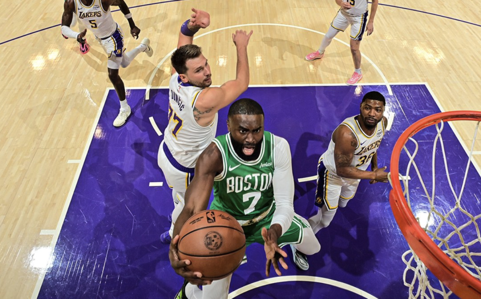 半场比赛结束,凯尔特人60-50领先湖人。凯尔特人3人上双,杰伦-布朗13分4篮板6助攻3抢断,怀特10分2篮板5助攻,替补普里查德11分3篮板4助攻。湖人仅东契奇上双得到18分,里夫斯9分2篮板,詹姆斯6分4助攻。