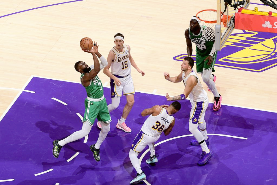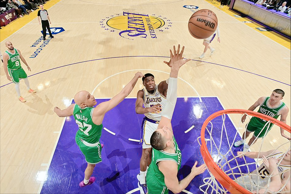 就这样,凯尔特人先占得了一手优势,随后进入第二节,里夫斯和老詹带队,正当湖人要起势、想追分的时候,裁判直接给湖人来了一记“冷水”——一个干扰球不算,转头又给了凯尔特人一个推人投篮进球,这吹罚尺度,换谁都得懵。