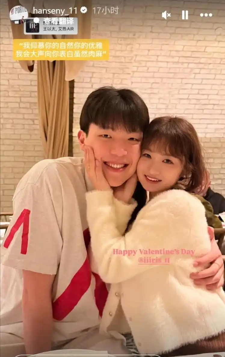 杨瀚森的女友iiiris_11也第一时间在评论区送上祝福:“太棒啦!!这是最好的消息!恭喜恭喜!!” 杨瀚森的感情生活也很甜蜜,之前情人节,他曾在社媒上晒出与女友的合影,庆祝双方节日快乐。