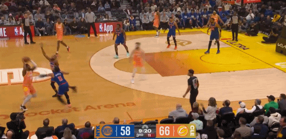 比赛刚刚开始,哈登便命中一记三分,随后哈登连续中投和远投不中,紧接着很快找回手感,连续在罚球线附近跳投得手,单节拿到7分3助攻。次节比赛中,哈登手感急速下降,单节5投仅有1中拿到2分。上半场结束,骑士队仅领先尼克斯队6分。