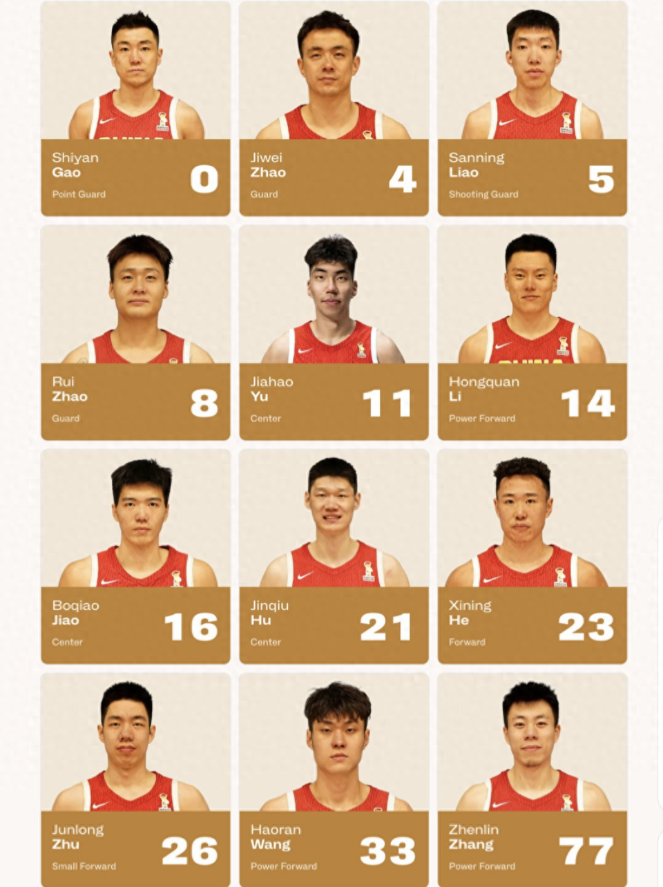 首先落选比赛大名单的7名球员中,包括曾凡博、徐杰、庞峥麟、程帅澎、徐昕、齐麟、蒋浩然。在与日本队的比赛之前,中国男篮主帅郭士强还需要对大名单进行精简,最后他没有选择胡明轩、赵嘉义。中国男篮与日本队的比赛阵容已定,他们分别是高诗岩、赵继伟、廖三宁、赵睿、余嘉豪、李弘权、焦泊乔、胡金秋、贺希宁、朱俊龙、王浩然以及张镇麟。