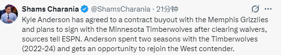北京时间2月27日,NBA常规赛继续进行,据名记shams报道,李凯尔与灰熊达成买断,之后他将重返森林狼辅佐爱德华兹;40岁的吉布森签约灰熊重返NBA,开启生涯第17个赛季。