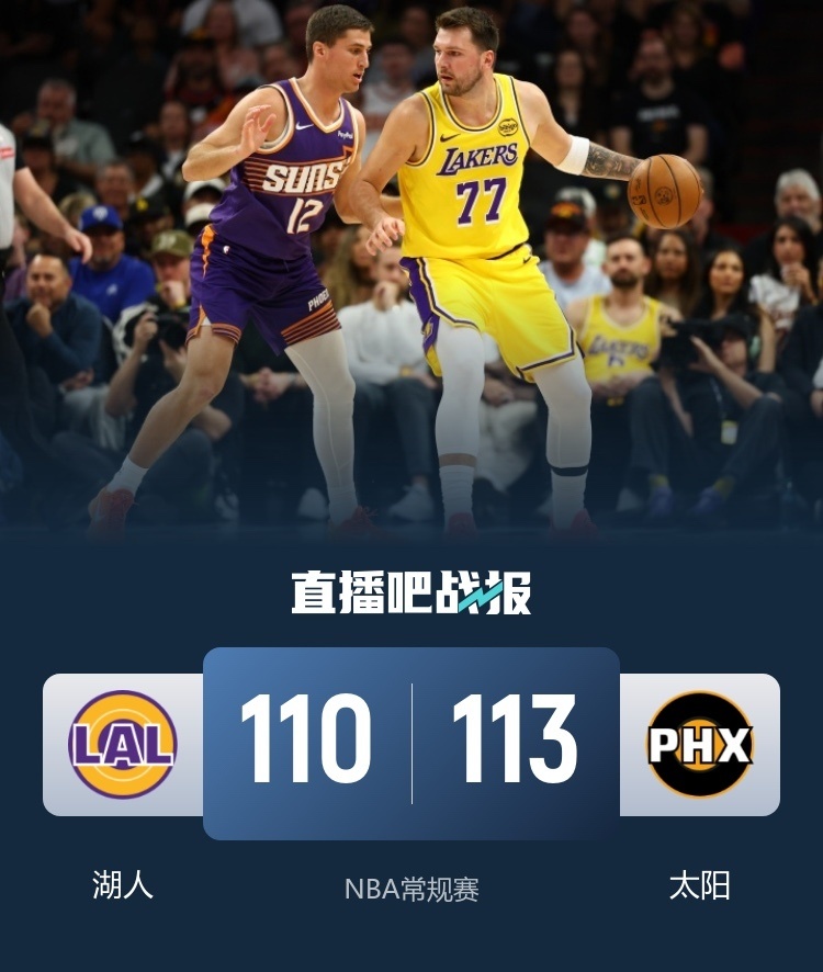 东契奇41+8+8,吉莱斯皮21分,太阳主场绝杀湖人