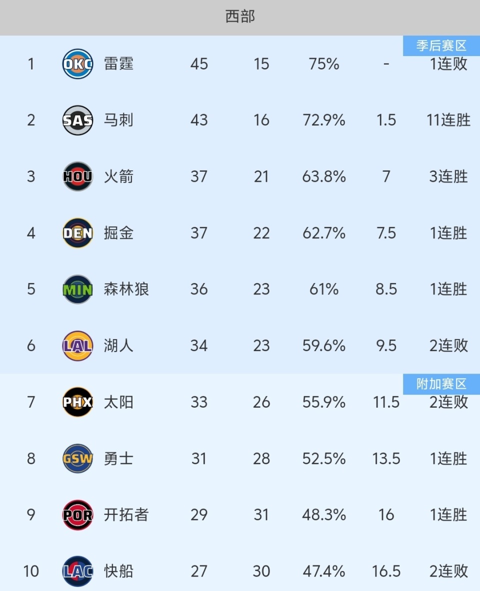 随着开拓者121-112险胜,勇士快船不利,NBA最新积分榜出炉!