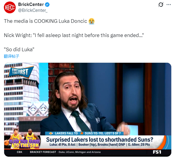 东契奇又遭批评,名嘴尼克-赖特在节目中表示:昨晚湖人比赛还没结束我就睡觉了,东契奇也是如此。