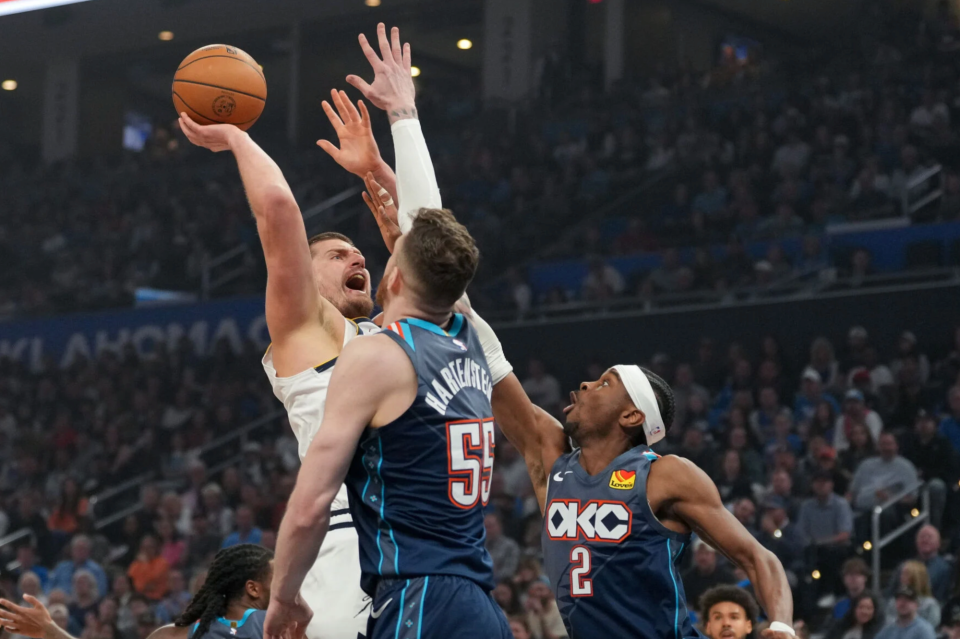易边再战,约基奇依旧攻传结合,他每次在雷霆反扑期间,总是能率队予以进攻回应,先是助攻穆雷三分命中,随后勾手得分。在约基奇的带领下,掘金重新把握双位数领先优势。但是雷霆表现顽强,再次打出防守反击迫近分差,追分到6分进入第四节。