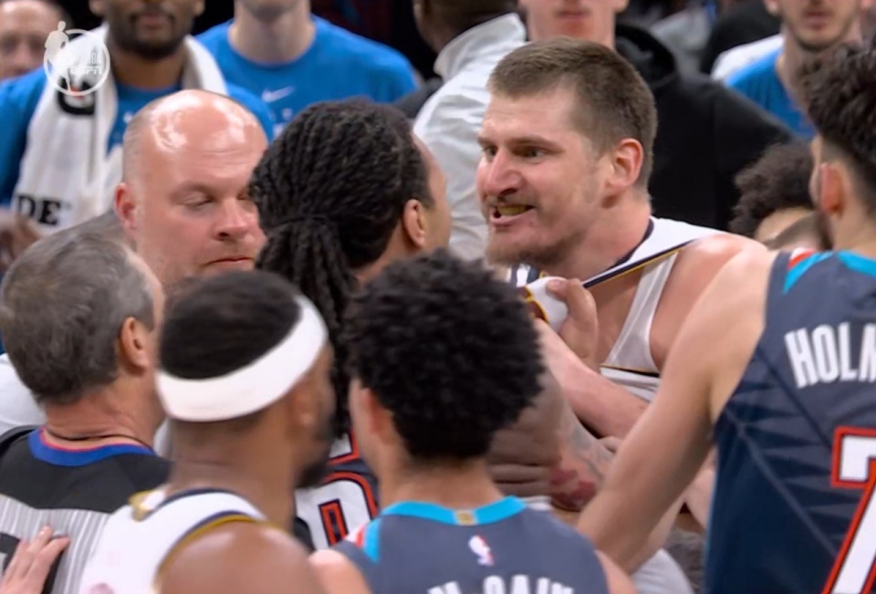 末节雷霆替补阵容11-2反超比分,约基奇登场带队稳住局面,打着打着现场爆发冲突,多尔特撞倒约基奇,后者起身怒喷多尔特,杰林冲过来与约基奇纠缠互喷,最终多尔特二级恶犯被驱逐,约基奇和杰林各自吃T。
