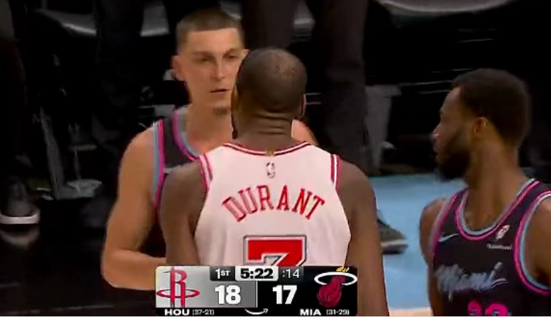 火箭遭热火逆转终结3连胜 杜兰特32+6+8冲突吃T阿门20+11