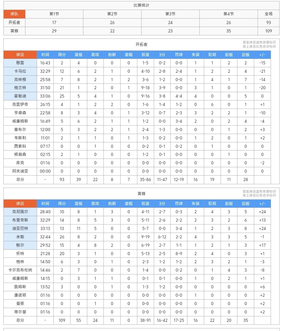 下半场第三节易边再战,黄蜂队又是上来进入状态很快,他们重新建立了两位数的领先优势,不过开拓者没有放弃,凭借着格兰特等人的发挥,在第三节结束时,把劣势重新拉回到了个位数,末节黄蜂队一波流带走了比赛,开拓者队面对巨大的差距选择投降认输,杨瀚森等替补球员登场,比赛进入垃圾时间,最终开拓者输掉了比赛!