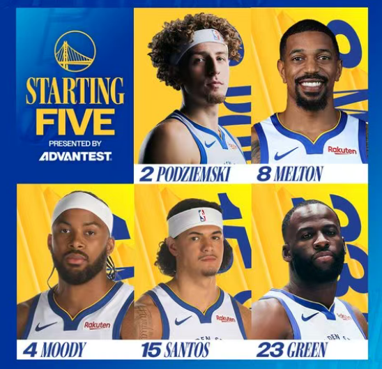 勇士:穆迪、桑托斯、追梦、梅尔顿、波杰姆斯基