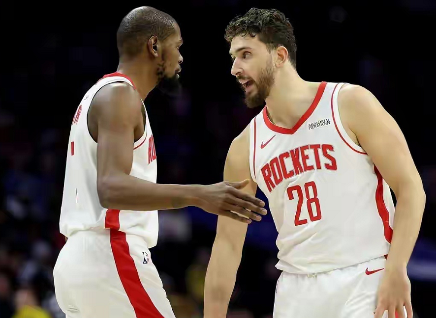 火箭队内外线攻防不尽如人意,申京14中6,阿门16中7,谢泼德14中5,火箭三少的表现都不及格,老将杜兰特是火箭队唯一的遮羞布。上半场,杜兰特的三分球是火箭队的及时雨,独砍14分3板5助2帽,正负值高达+17,扮演定海神针的角色;下半场,杜兰特得分组织一把抓,既当爹又当妈,为火箭队续命;但到了末节决战,斯波派重兵围剿杜兰特,彻底掐住了火箭队的命门,火箭队进攻体系彻底失去了运转能力。