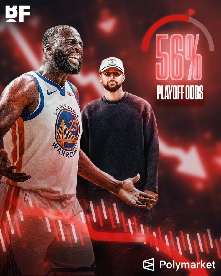 本场失利后,勇士近9场输掉6场,体育预测平台Polymarket Sports更新了其季后赛晋级概率,已从此前的92%暴跌至56%。目前勇士战绩为31胜30负,排名西部第8,但是已经被身后的快船队缩小了差距。更不利的是,本赛季库里与巴特勒同时缺阵时,球队仅取得5胜12负,胜率低至29.4%。