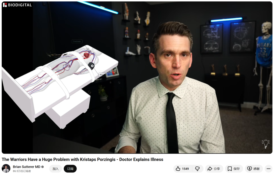 Brian Sutter表示,波尔津吉斯本人曾在采访中透露,自己被诊断为POTS(体位性心动过速综合征)。这是一种与人体自主神经系统调节相关的疾病,核心症状包括站立时心率异常升高、持续性疲劳、头晕、注意力下降(脑雾)及睡眠障碍,严重时会影响患者正常工作与生活,对需高强度运动的运动员而言影响更为显著。从波津公开的疲劳、体能波动等表现来看,与POTS症状高度契合。