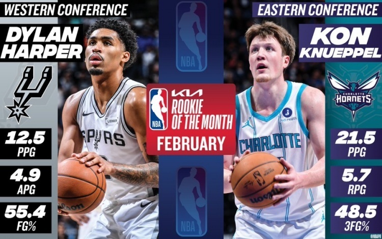 结果万万没有想到,三后卫的体系直接帮助球队完成了蜕变。NBA杯赛挺进总决赛、常规赛4杀卫冕冠军雷霆以及2月份11胜0负的全胜纪录,但是这都不是最能拿出手的。马刺全队横扫联盟单月所有奖项,创造了NBA的历史。文班荣誉西部月最佳球员和最佳防守球员,主教练米奇获得最佳主帅的殊荣,最令人惊讶的就是新秀哈珀,凭借场均12.5分4.9助攻,55.4%的投篮命中率,力压状元郎弗拉格,兑现自己的天赋。