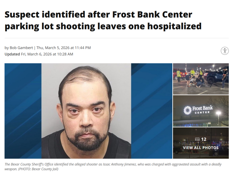 据多名马刺记者报道,当地时间晚上10点左右,马刺与活塞的比赛刚结束,大批球迷正有序离场,马刺主场停车场突发枪击案。一名48岁男子遭枪击至少两次,肩部和胸部中弹,伤势严重。治安官透露,47岁的嫌犯当场被治安官副手逮捕,目前已被控制。