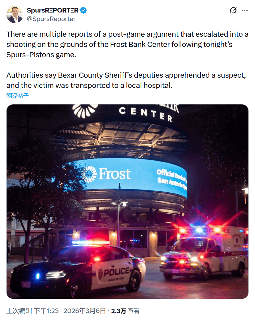 马刺主场发生枪击案!受害者多处中弹 若救治无效凶手将遭重大指控