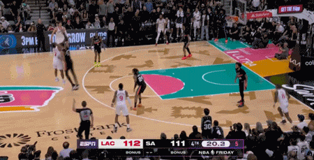 第二节马刺全队仅得21分,快船单节砍下34分。半场战罢,快船66-46领先马刺整整20分。大洛上半场11中7,狂砍17分4篮板3抢断,家有一老如有一宝。第三节开始,快船最多拉开到25分。眼看马刺要被打花了,尚帕尼突然爆发!