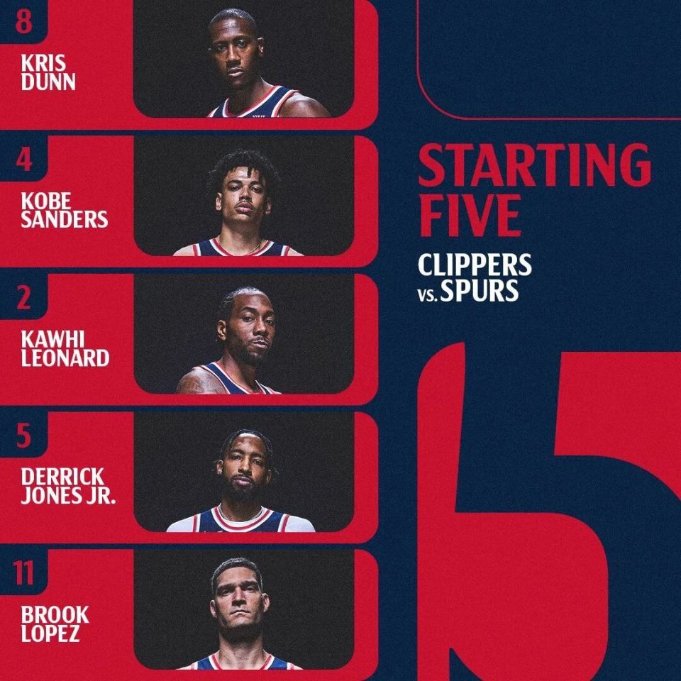 快船首发:克里斯-邓恩、科比-桑德斯、伦纳德、小德里克-琼斯、大洛佩斯。科林斯因伤休战,尼德豪泽赛季报销。马刺首发:福克斯、卡斯尔、瓦塞尔、尚帕尼、文班亚马。第一节大洛火力全开,单节7中4砍下9分,得分两队最高。