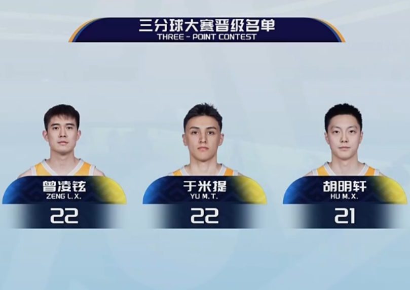 CBA三分大赛:胡明轩22分+加赛13-4大胜于米提 第2次夺三分王