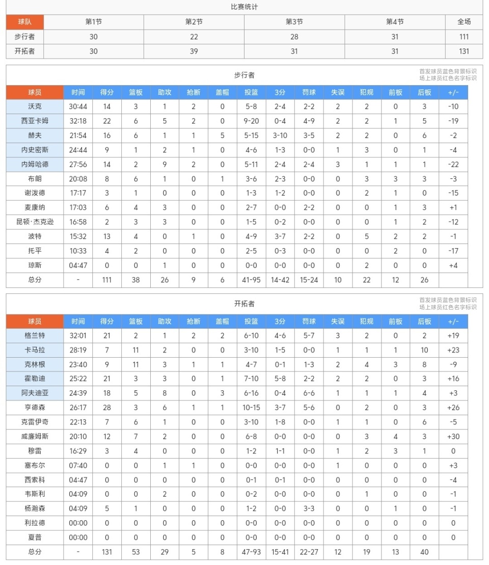 下半场第三节易边再战,虽然步行者的进攻打得不错,但是开拓者更好,现在开拓者强势的得分点太多,他们不仅平稳的过度,还在第三节继续扩大优势,末节开拓者继续强势发挥,不给步行者翻盘的机会,以后双方撤下主力,随着杨瀚森等替补球员的登场,这场比赛的悬念彻底没了,最终开拓者拿到了胜利!